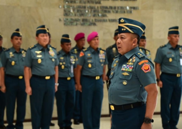 Kepala Staf Angkatan Laut (Kasal) Laksamana TNI Dr. Muhammad Ali memimpin Upacara Pelaporan Korps Kenaikan Pangkat 23 Perwira Tinggi (Pati) TNI Angkatan Laut (TNI AL) bertempat di Gedung RE. Martadinata, Mabesal, Cilangkap, Jakarta Timur, Kamis (04/01).