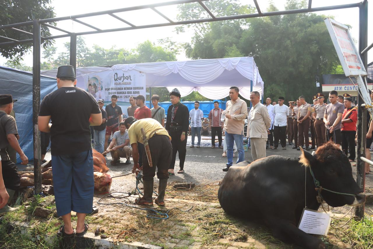 Kapolres Bogor AKBP Rio Wahyu Anggoro menyampaikan bahwa pelaksanaan ibadah qurban ini bukan hanya sekadar ritual keagamaan, tetapi juga sebagai bentuk rasa syukur kepada Allah SWT serta wujud nyata kepedulian sosial kepada sesama, khususnya masyarakat yang membutuhkan.
