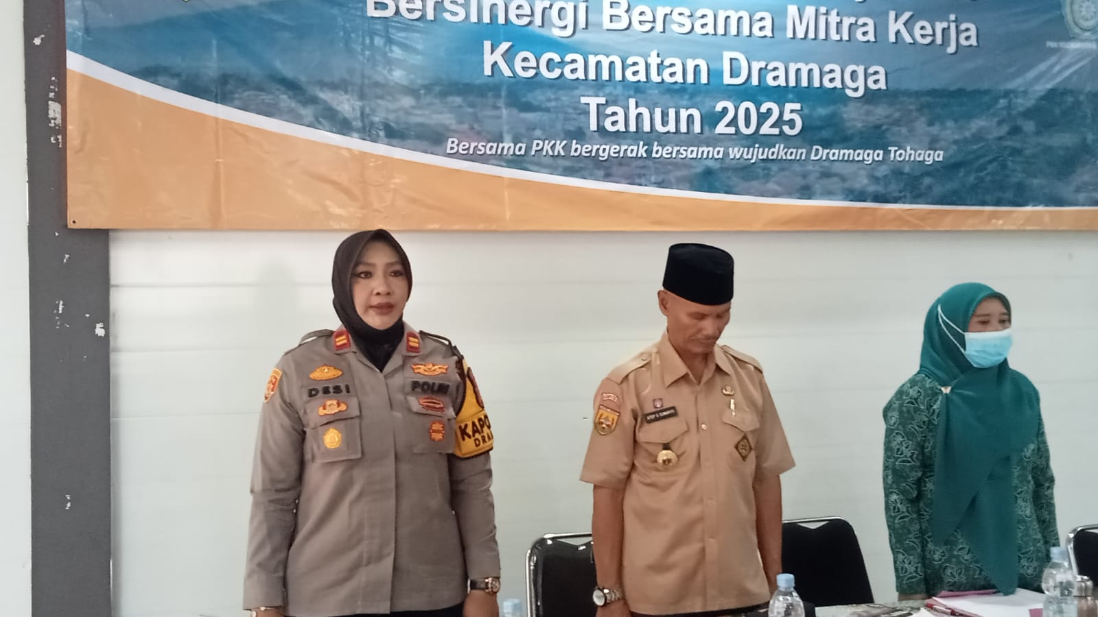 Wapenja.com,BOGOR- Kapolsek Dramaga IPTU Desi Triana S.H M.H hadiri Giat sosialisasi kerja PKK bersinergi bersama Mitra Kerja Tingkat Kecamatan Dramaga Tahun 2025, bertempat di Halaman Kantor Kecamatan Dramaga, Jl. Pasar Dramaga No. 74 Desa Dramaga Kec. Dramaga Kab. Bogor, Senin, 14 Juli 2025.