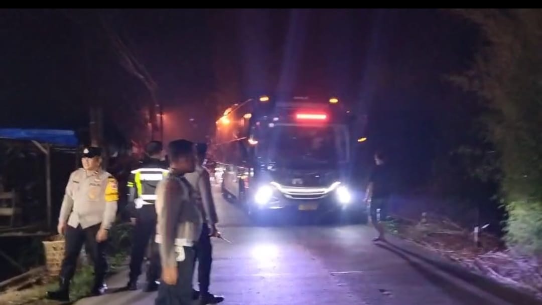 Dipimpin langsung oleh Kanit Binmas Polsek Ciawi IPTU Agus Syafi’i, personel gabungan dari piket fungsi segera bergerak ke lokasi usai menerima laporan dari masyarakat terkait adanya bus yang terperosok ke bahu jalan akibat pecah ban, Kejadian tersebut terjadi di malam hari dan berpotensi mengganggu kelancaran arus lalu lintas.