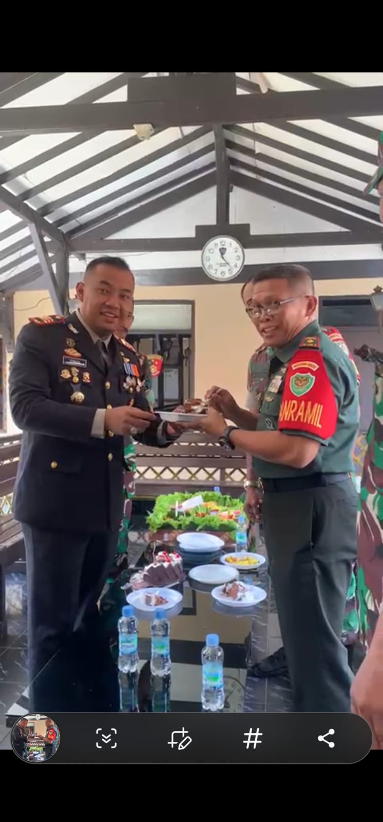 Pemotongan Tumpeng yang diberikan Kapolsek Ciawi kepada Danramil Ciawi Mayor Inf Budi Rahmat,dan dilanjutkan dengan Ramah tamah serta makan bersama antara Anggota Polsek Ciawi dan Anggota Koramil 0621-ciawi, yang mana pelaksanaan giat dalam rangka Sinergitas TNI dan POLRI yang sedang merayakan HUT Bhayangkara ke 79 Tahun 2025, dan kemudian dilanjutkan dengan Season Foto bersama Anggota Polsek Ciawi dan Anggota Koramil 0621-11 Ciawi