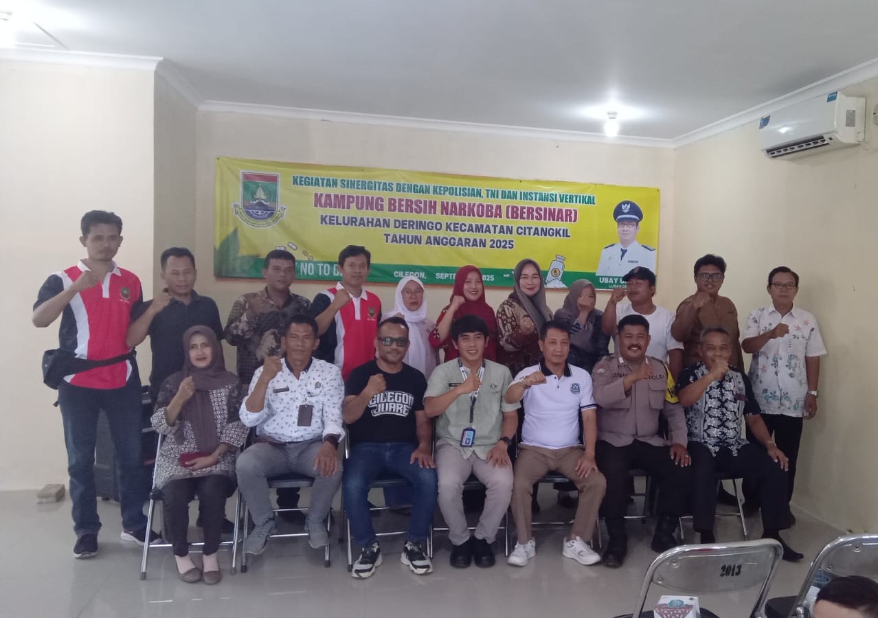 Wapenja.com/Cilegon- Bertempat di aula Kelurahan Deringo Kecamatan Citangkil Kota Cilegon, Jum’ at (19/09/2025) di selenggarakan acara Kampung Bersih Narkoba (Bersinar) di rangkaikan dengan tes urin bagi para pegawai Kelurahan setempat.