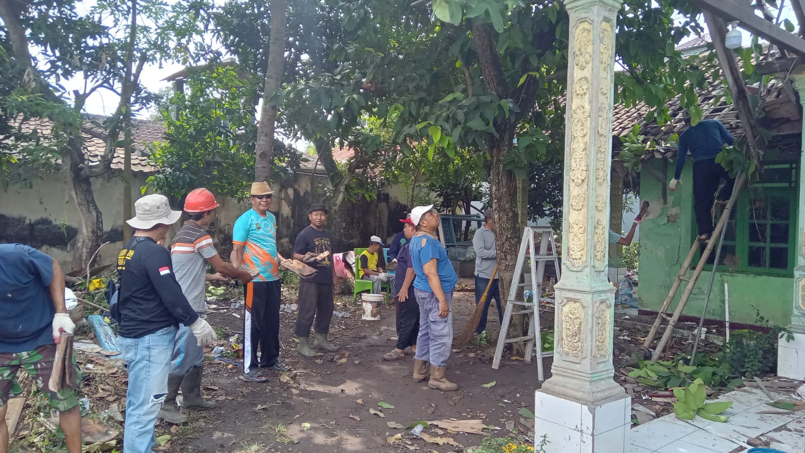 Sebagai langkah awal, atap rumah yakni Genteng dan lainya satu persatu di bongkar oleh pihak pemilik rumah yang di bantu warga masyarakat setempat.
