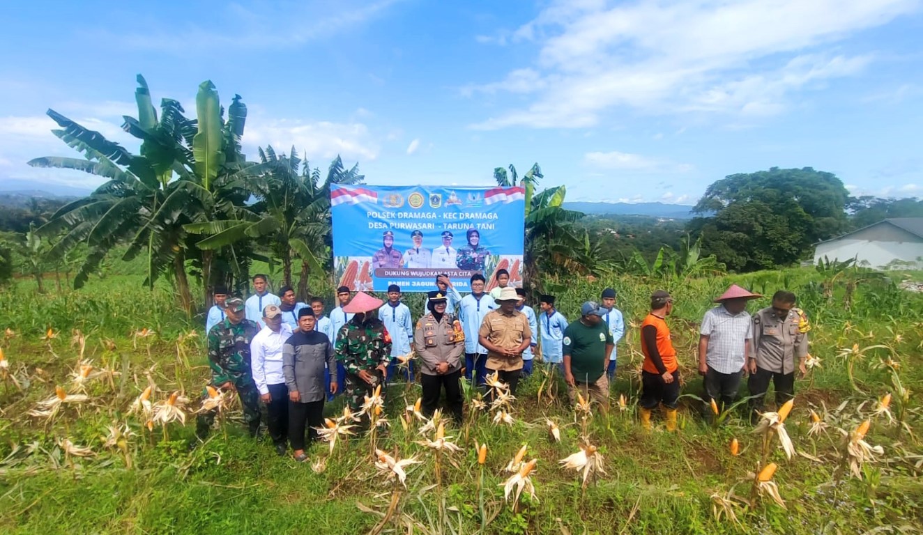 Wapenja.com/Bogor – Di tengah tantangan ketahanan pangan nasional dan tekanan ekonomi global, Polsek Dramaga menunjukkan komitmen nyata melalui aksi langsung di lapangan. Dipimpin oleh Kapolsek Dramaga IPTU Desi Triana, S.H., M.H., kegiatan Panen Jagung Hibrida NK7328 berlangsung di lahan seluas 1000 m² milik Yayasan Pondok Pesantren Zaid bin Tsabit, Desa Purwasari, Kecamatan Dramaga, Kabupaten Bogor, hari Senin (17/11/2025), pukul 09.30–11.30 WIB.