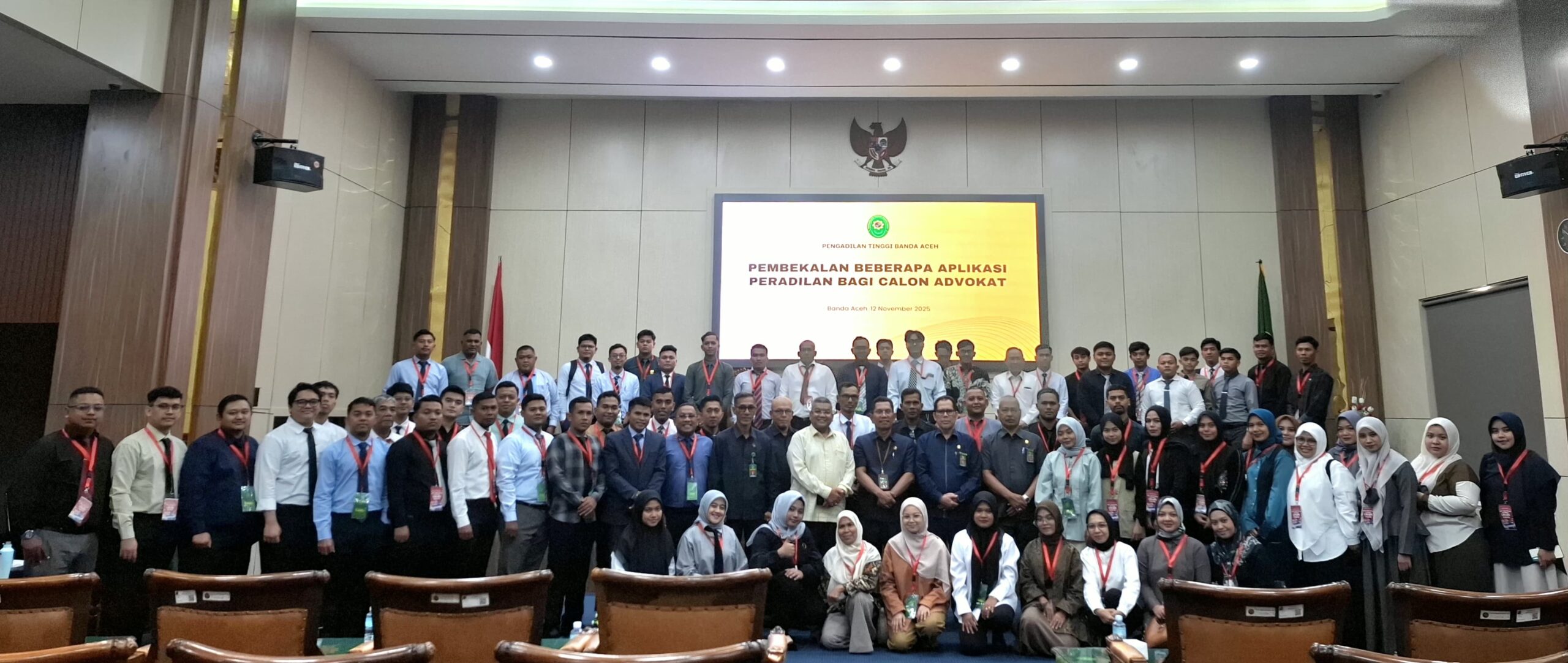 WAPENJA.COM-PANDEGLANG-ACEH – Pengadilan Tinggi Banda Aceh bertempat di Aula PT BNA memberikan pembekalan Aplikasi Peradilan kepada 71 orang Calon Advokat, Rabu 12 November 2025.