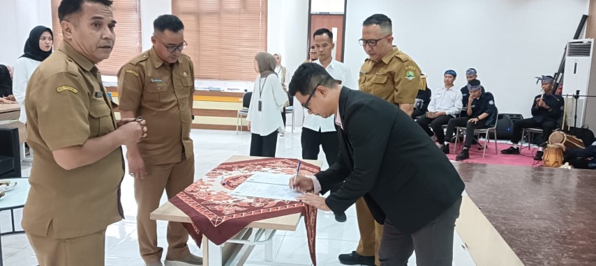 Prosesi sertijab berlangsung melalui penandatanganan berita acara, penyerahan memori jabatan, dan foto bersama.