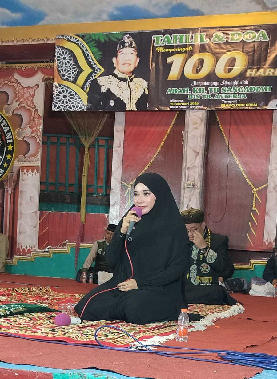 “Alhamdulilah acara berlangsung dengan khidmat, dan saya atas nama keluarga besar abah tercinta menghaturkan banyak terima kasih atas kehadiran seluruh anggota dan tokoh alim ulama serta para undangan yang sudah ikut sambung doa 100 hari berpulangnya ayahanda kami tercinta,” ucapnya sambil menahan emosi.