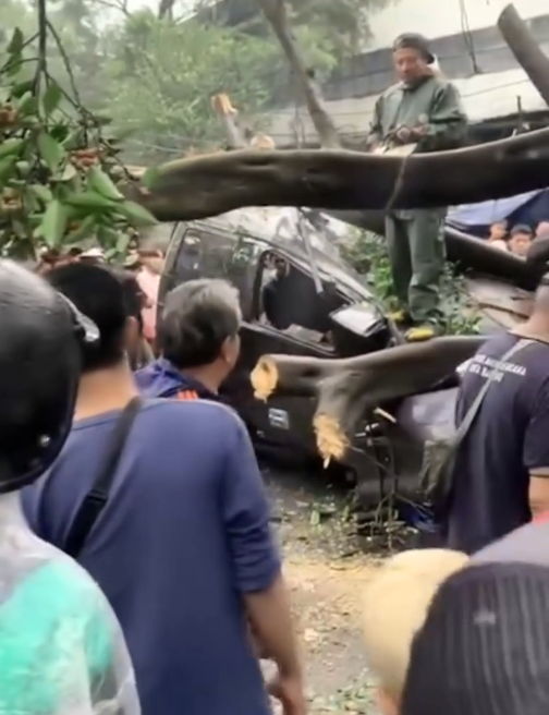 Pohon tumbang menimpa satu unit mobil di Jalan Bojong Raya Kecamatan Bandung Kulon, menurut informasi kejadian tersebut memakan korban jiwa, satu orang meninggal dunia.
