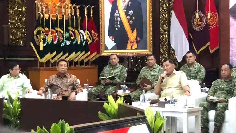 Wapenja.com/Jakarta – Suasana hangat dan penuh keakraban menyelimuti Kantor Kementerian Pertahanan (Kemhan) di Jalan Medan Merdeka Barat, Jakarta Pusat, Jumat pagi (24/4/2026). Sejumlah nama besar dari jajaran purnawirawan TNI hadir memenuhi undangan Menteri Pertahanan Sjafrie Sjamsoeddin. Di antara mereka tampak Wiranto, mantan Panglima ABRI dan Menko Polhukam; Gatot Nurmantyo, eks Panglima TNI; Dudung Abdurachman, mantan KSAD; serta Andika Perkasa, eks Panglima TNI yang juga pernah menjabat KSAD.