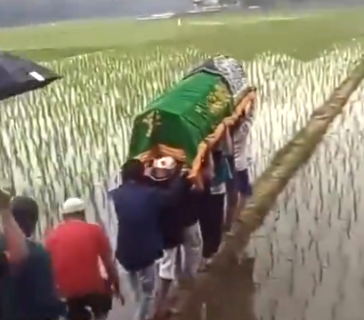 Wapenja.com/Bekasi – Sungguh pemandangan yang memilukan sekaligus memalukan terjadi di Kampung Dukuh, Desa Ciledug, Kecamatan Setu, Kabupaten Bekasi. Di tengah peradaban modern, warga di sini terpaksa melakukan ritual terakhir yang penuh risiko: menggotong jenazah melewati pematang sawah yang sempit dan licin.