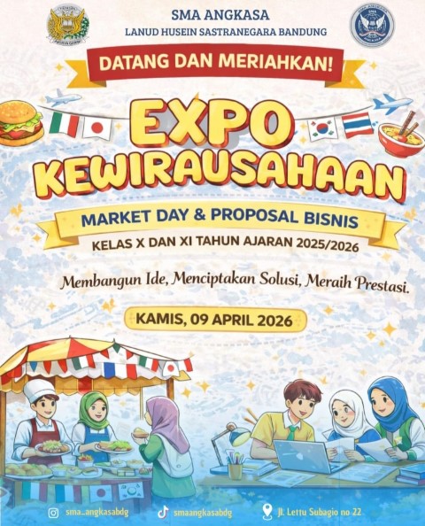 Wapenja.com/Bandung – SMA Angkasa Bandung (Lanud Husein Sastranegara) menggelar kegiatan Market Day sebagai bagian dari Program Unggulan Kewirausahaan yang dilaksanakan pada Kamis, 9 April 2026, mulai pukul 06.30 hingga 11.00 WIB di lapangan sekolah.